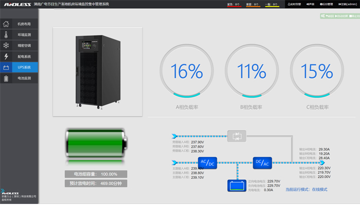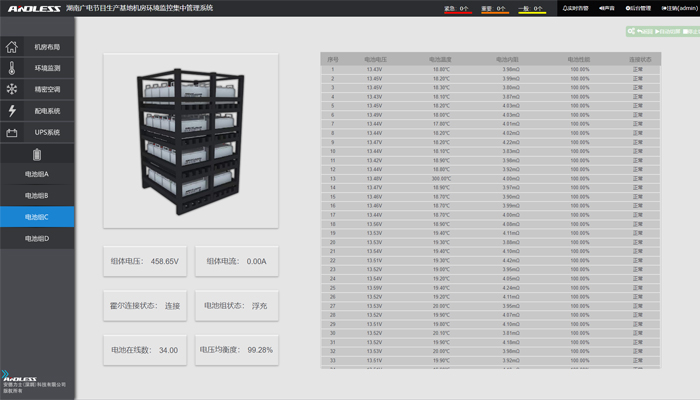 本次的本次動力環境監控系統主要是對機房內配電、UPS主機、電池、精密空調、環境等設備進行集中監控管理,該系統可廣泛應用于監控機房、通信機房、隧道風機房、變電站及配電室等場所。本動環系統軟件可實現中文圖形化人機界面的操作,界面更友好,功能強大,可實現對機房內設備的全參數、全方位的監控,大大提高了用戶的維護管理效率,降低了維護成本。