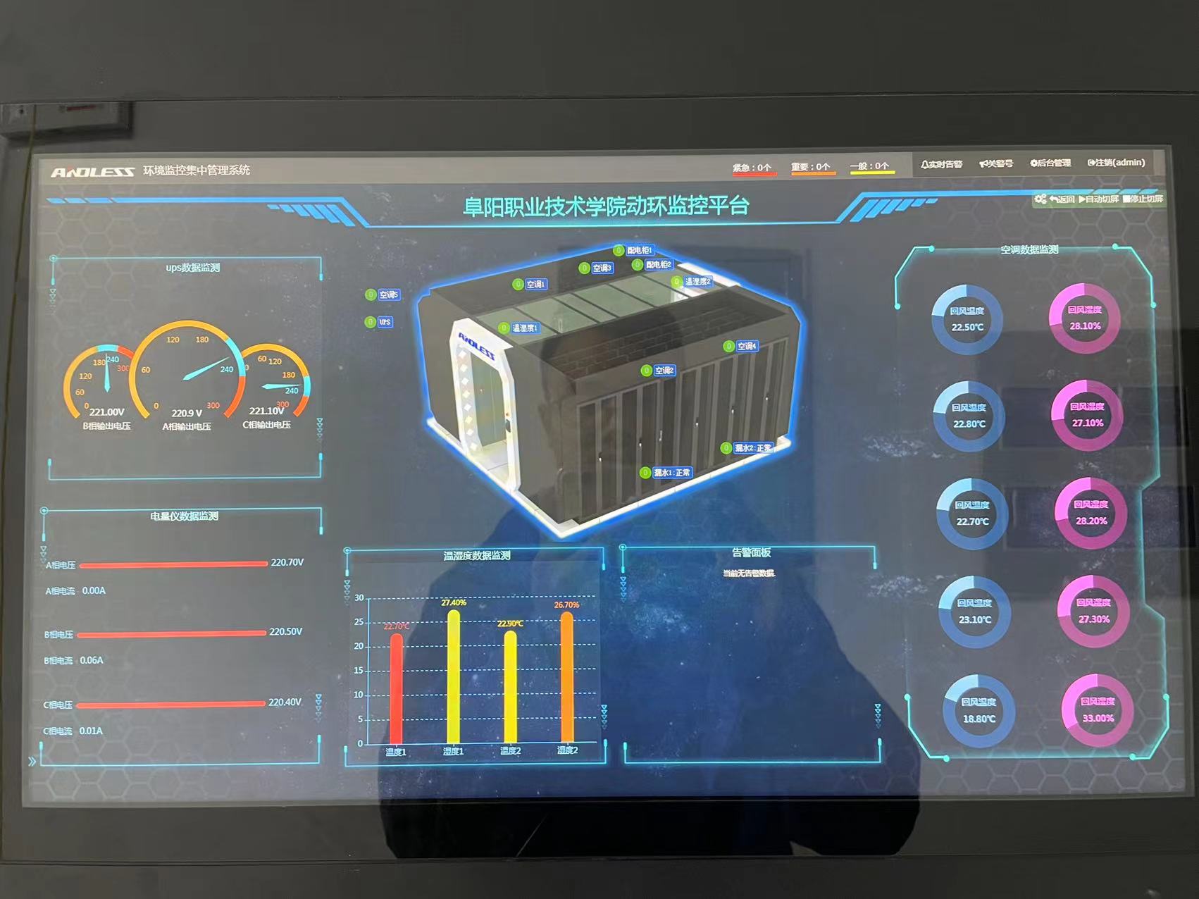 近期阜陽市職業(yè)技術(shù)學(xué)校向我司采購品牌安德力士的模塊化GLS-160KVA UPS主機1臺,12V100AH蓄電池120只,電池箱直流箱等,30KW精密空調(diào)1臺以及40KW精密列間空調(diào)4臺、冷通道1套、環(huán)境監(jiān)控集中管理系統(tǒng)1套。