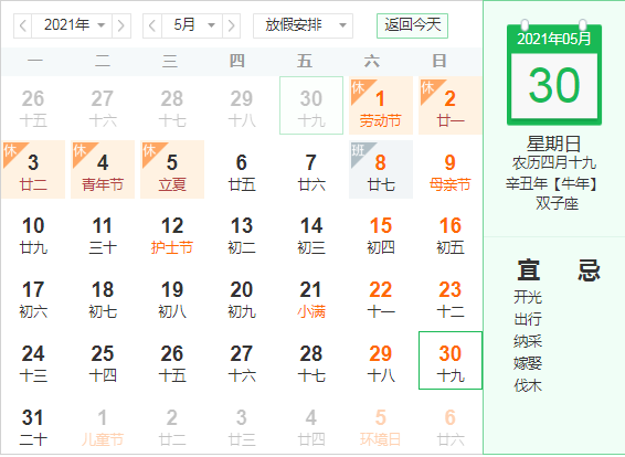“五一”國際勞動節(jié):5月1日-5日放假,共5天。5月8日(星期六)正常上班。