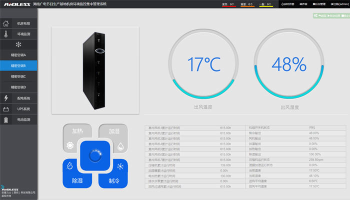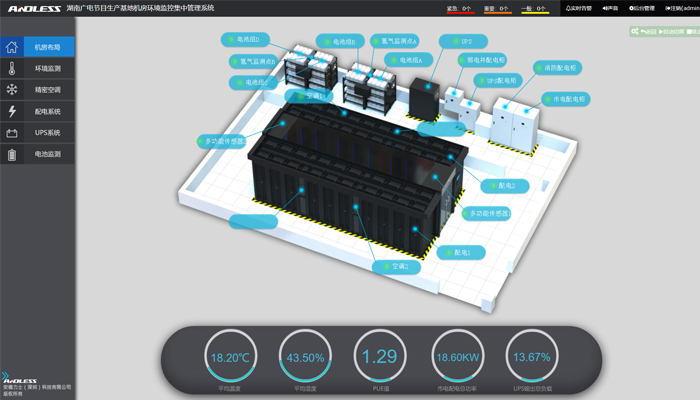 本次為湖南廣播電視臺節目生產基地冷通道機房配備并安裝調試安德力士品牌動力環境集中監控系統一套,現已安裝、調試、培訓完成。