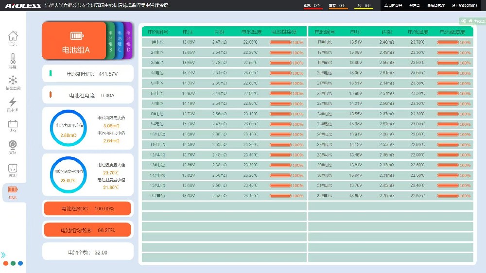 產(chǎn)品概述:蓄電池是UPS系統(tǒng)的核心組成部分,它能夠在電力故障或斷電時提供臨時的電力支持,保證數(shù)據(jù)中心的正常運行。通過連續(xù)監(jiān)控電池狀態(tài),包括電壓、電流、溫度和內(nèi)阻等參數(shù),UPS能夠及時發(fā)現(xiàn)電池健康狀況的變化,預(yù)測潛在故障,并在必要時提前更換或維護,從而避免突發(fā)性故障導(dǎo)致的服務(wù)中斷。這種監(jiān)測有助于延長電池壽命,降低維護成本,同時保證了電力供應(yīng)的穩(wěn)定性。蓄電池網(wǎng)絡(luò)在線監(jiān)測系統(tǒng)是我公司利用最新的單體蓄電池參數(shù)傳感器技術(shù),針對軍隊、通訊、電力、金融等領(lǐng)域蓄電池的使用現(xiàn)狀,開發(fā)的一套全新蓄電池網(wǎng)絡(luò)在線管理和監(jiān)測系統(tǒng)。該系統(tǒng)完美的結(jié)合了最新的在線蓄電池內(nèi)陰測量技術(shù)和計算機網(wǎng)絡(luò)實時通訊技術(shù),成功的解決了蓄電池的遠程監(jiān)控和狀態(tài)檢修的問題,使得蓄電池的日常維護工作均在網(wǎng)絡(luò)監(jiān)控終端完成。性能特點:系統(tǒng)可監(jiān)測單體電池電壓、單體電池負極柱溫度、單體電池歐姆內(nèi)阻系統(tǒng)可監(jiān)測電池組電壓、電池組充電/放電電流可對單體電池浮充電壓失常報警、單體電池負極柱溫度異常報警、單體電池過放報警、單體電池內(nèi)阻異常報警可對電池組浮充電壓高/低報警、電池組充電/放電電流過大報警、電池組過放電報警