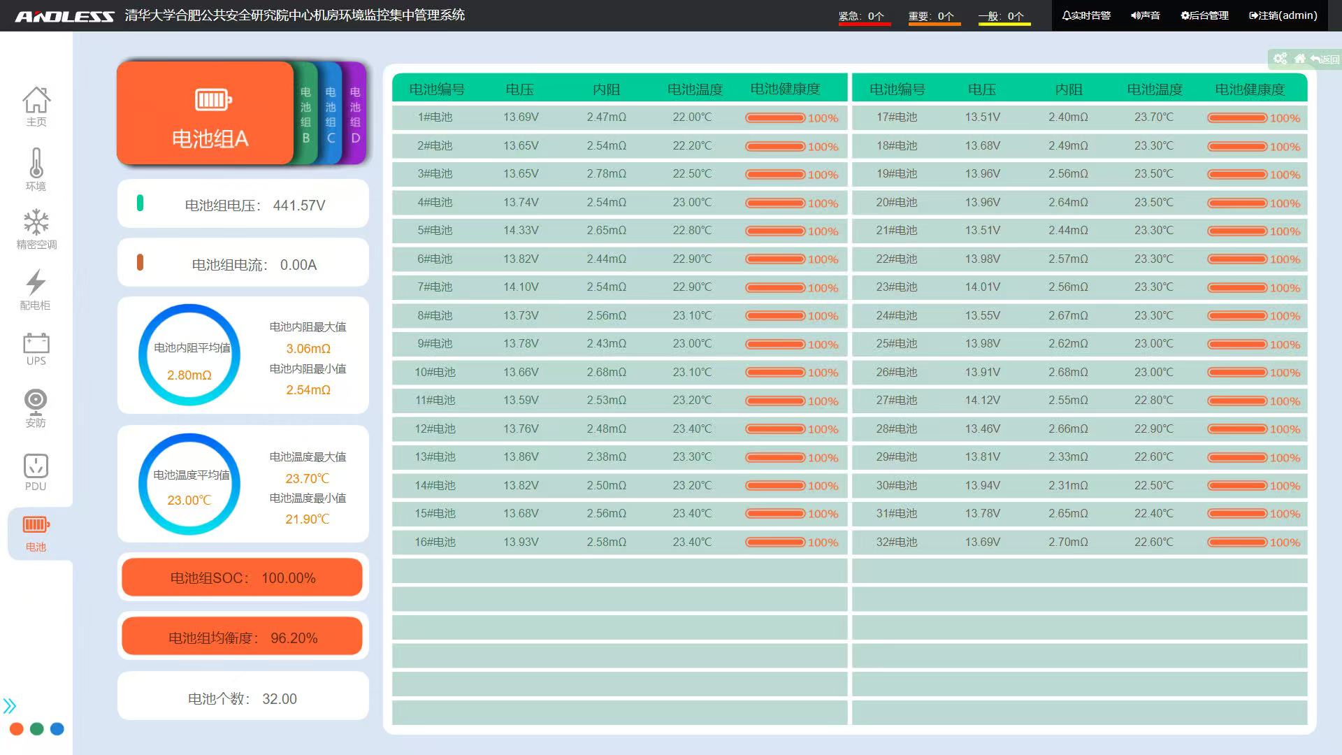 系統(tǒng)可監(jiān)測單體電池電壓、單體電池負(fù)極柱溫度、單體電池歐姆內(nèi)阻